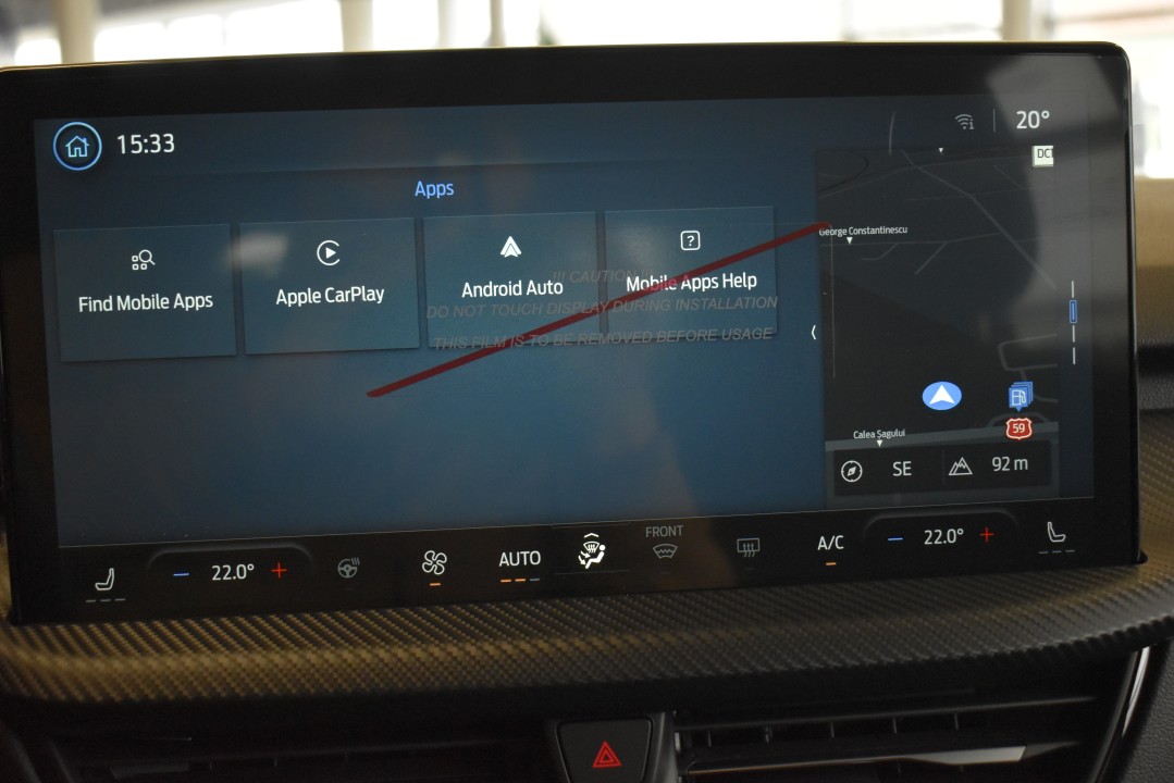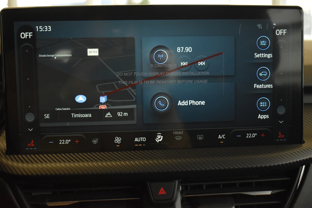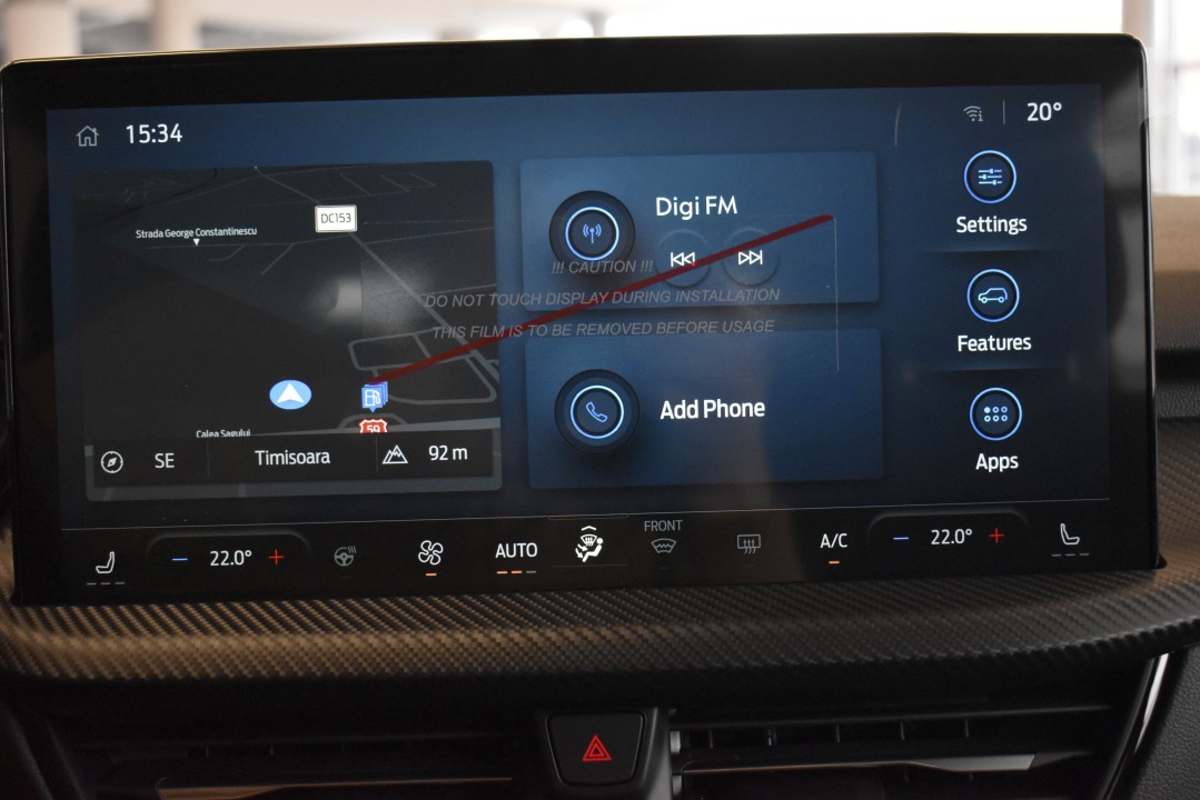 • Sistem multimedia - Pack 1 (ecran de bord - digital 13”, ecran tactil central multifuncțional 13.2", sistem de navigație, radio DAB, 6 difuzoare, modem 5G, sistem SYNC 4, comenzi radio pe volan)